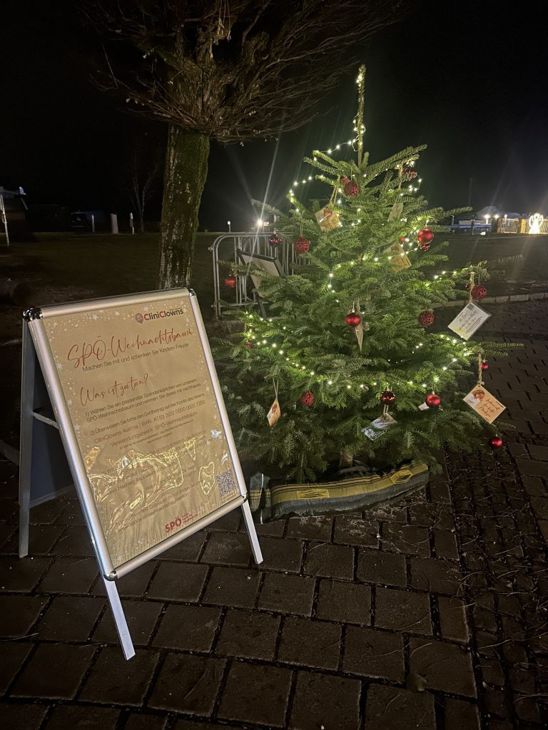 Bei uns in Unterach befindet sich in der Adventszeit der SPÖ-Weihnachtsbaum am Hauptplatz direkt am Weg zum Dampfersteg. An diesem Baum hängen Weihnachtskärtchen mit Leistungen von „CliniClowns“, die mit einer Spende mitfinanziert werden können.